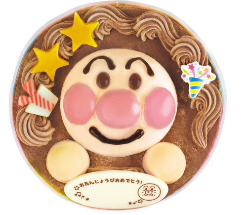 牛奶巧克力蛋糕上用面包超人造型的香草慕斯装饰