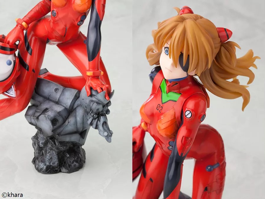 无论是战斗服的细节,还是明日香的表情,都制作得非常精致。底座加入了改2号机的元素,另:明日香手中的头盔可以拆卸。