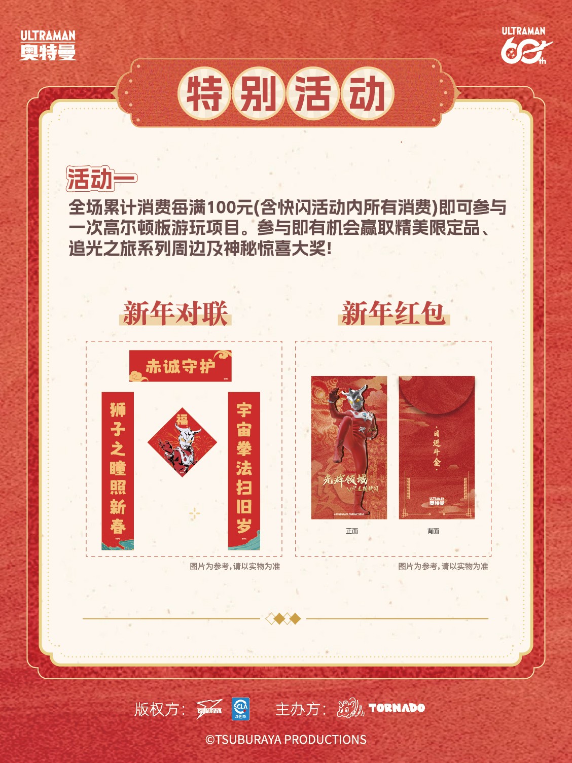 消费满100R M B,有机会获得奥特曼新春对联、新年红包及更多惊喜浮力~