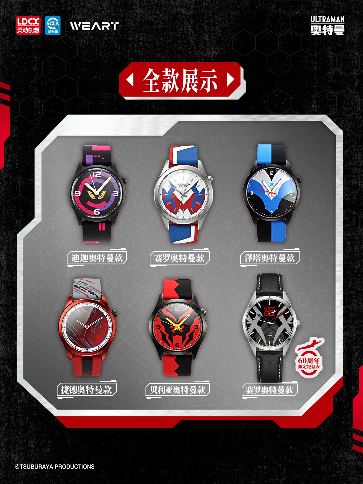 多款奥特曼联名:迪迦、赛罗、捷德、泽塔、贝利亚五款齐发,更有60周年纪念款限量登场。